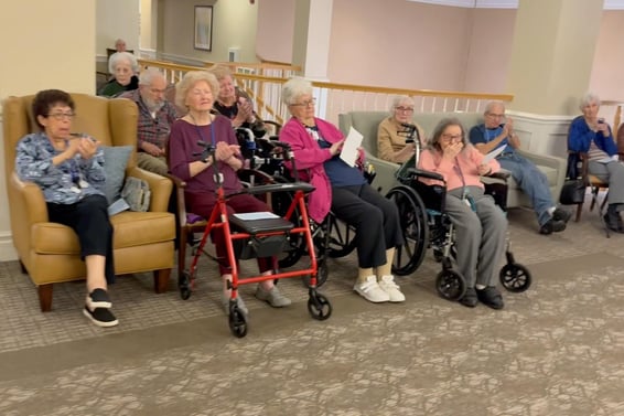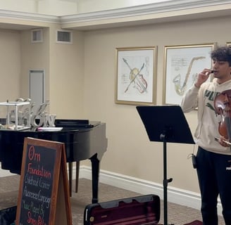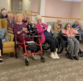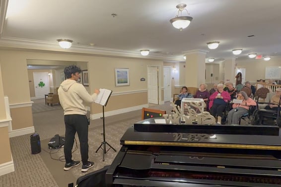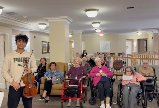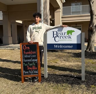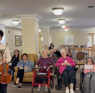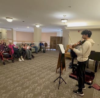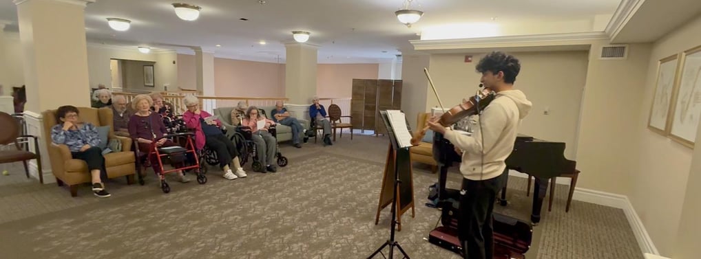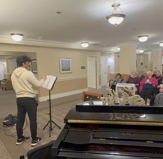 Bear Creek Assisted Living was the ninth location where I played. Once again, I was also late to this event, but this time I had to entertain the crowd while my dad parked and brought the rest of my equipment in. The audience was getting impatient and I knew they couldn't wait any longer. I couldn't stall the whole time, deciding to play Ode to Joy, one of my memorized songs to please the audience. Fortunately, my dad came and we started to set up the equipment after an awkward start.