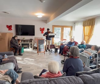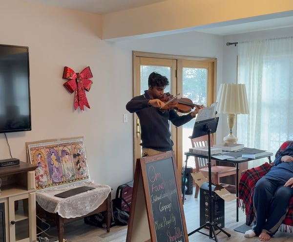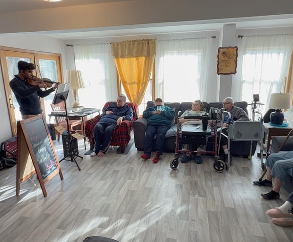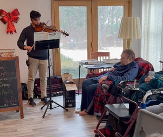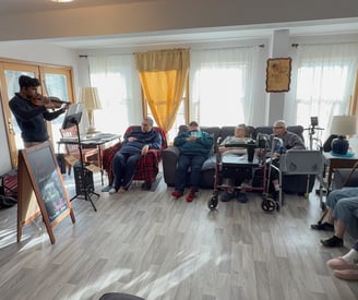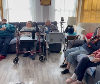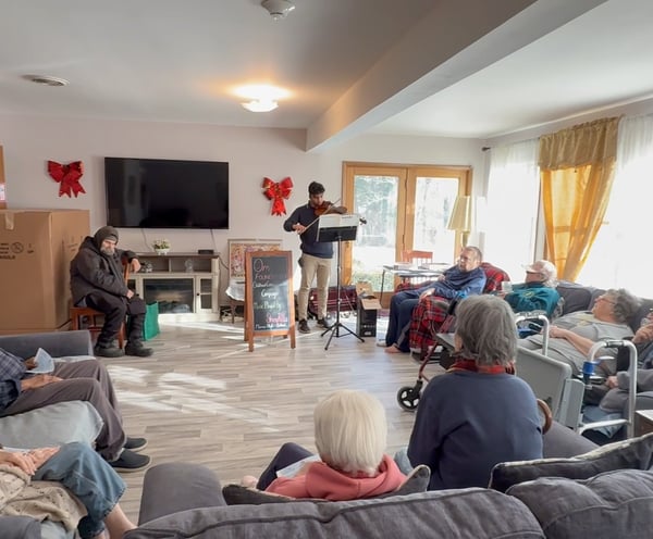 The Holy House in Hightown was the second location where I played. Remembering my first performance, I saw this as a chance for redemption. I walked in confidently with my stuff, where I was greeted by Willma, who runs the Holy House. She told me where I should set up and then called the house's inhabitants. When everyone arrived, I started with a speech - one where I talked about the cause and my relationship with Om Parikh. Already off to a good start, I began to play my music. I noticed throughout my performance that my mistakes began to decrease: I started to play more clearly and elegantly. While I was playing, several things happened that I didn't expect would happen.
