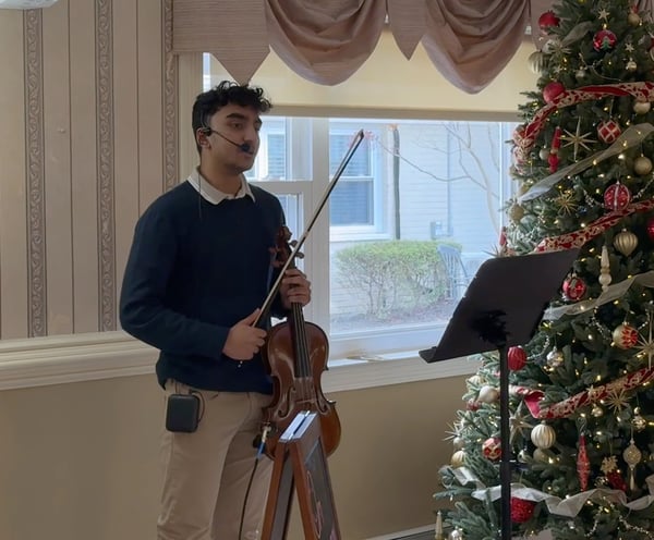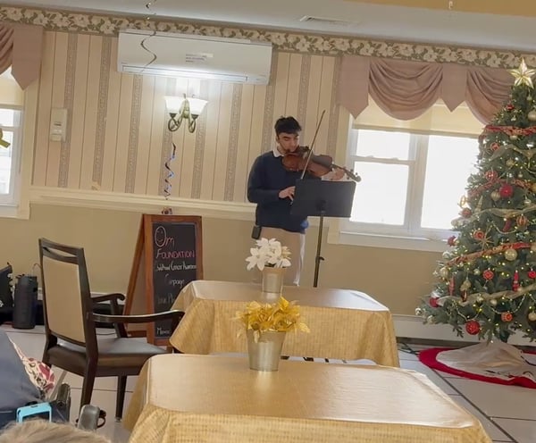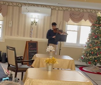 The Gardens At Monroe was the first location where I played. I'll admit, I was nervous because I haven't played my instrument in front of an audience before. When my dad and I arrived, we brought our stuff and proceeded inside the building where we met a large audience of elderly folks. It was daunting; I couldn't imagine having that many eyes looking at me all at once. After I set up my instrument and music stand, I looked at my dad and told him I wasn't ready for this. Hoping to get out of this, my gut sank when my dad told me "this is the first step". Picking up my instrument, I then gave a low effort speech (I barely mentioned my cause, and why I was there!).
